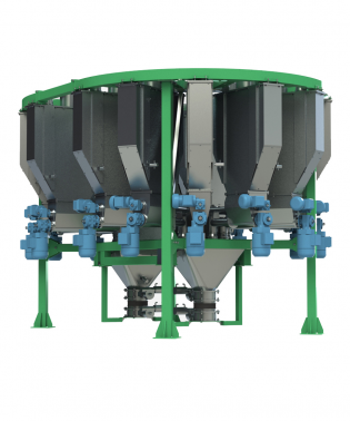 • Компоновка весовых бункеров позволяет дозировать один и тот же компонент в значениях от 0,05 до 20кг
